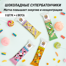 Зеленая фисташковая бомба эмоций и вкуса с ноткой сладости зарядит настроением до конца дня. Необычное сочетание ароматной клубники и легкой сладости розовой матчи не оставит никого равнодушным. Сочетание легкой сладости яблока с насыщенным шоколадом расцветят будни и повысят настроение. Нотки шоколада раскрывают яркий вкус банана и повышают настроение на весь день.