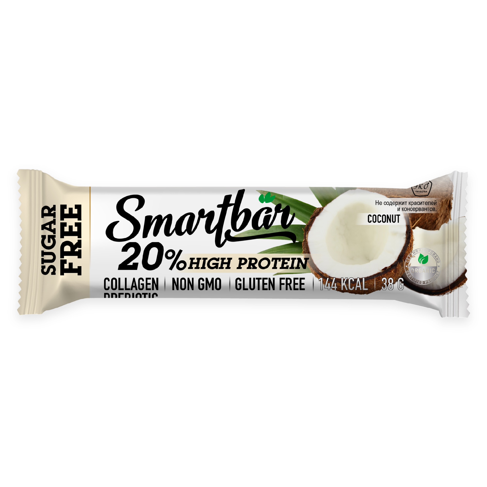 Вкусный и полезный перекус для тех, кто следит за фигурой! Протеиновый батончик Smartbar с кокосом подарит вам солнечное настроение и силы на целый день. Усиленное содержание протеина помогает добрать суточную норму белка, поэтому наш батончик идеален для тех, кто ведет активный образ жизни и контролирует свой рацион!